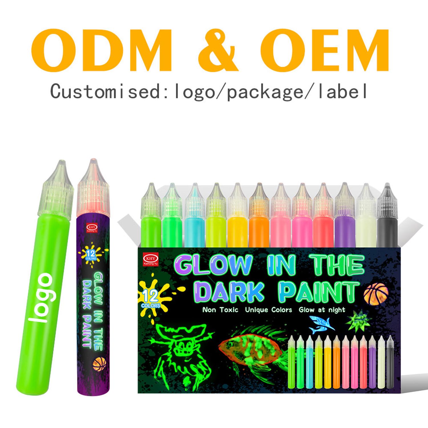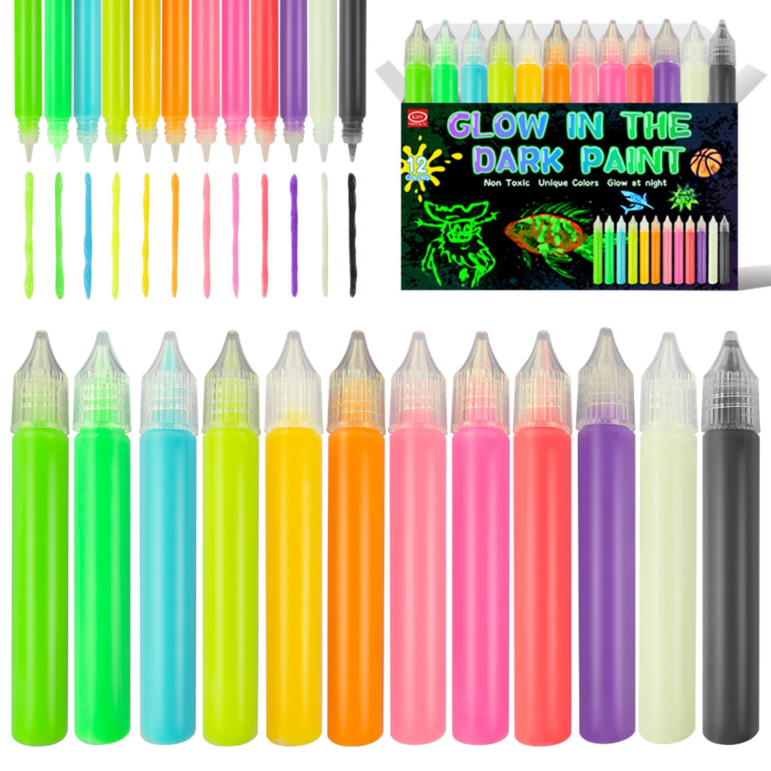 Customized 12 Colors 15ML Non-toxic DIY Painting Art Set Glow in the Dark Acrylic Paint