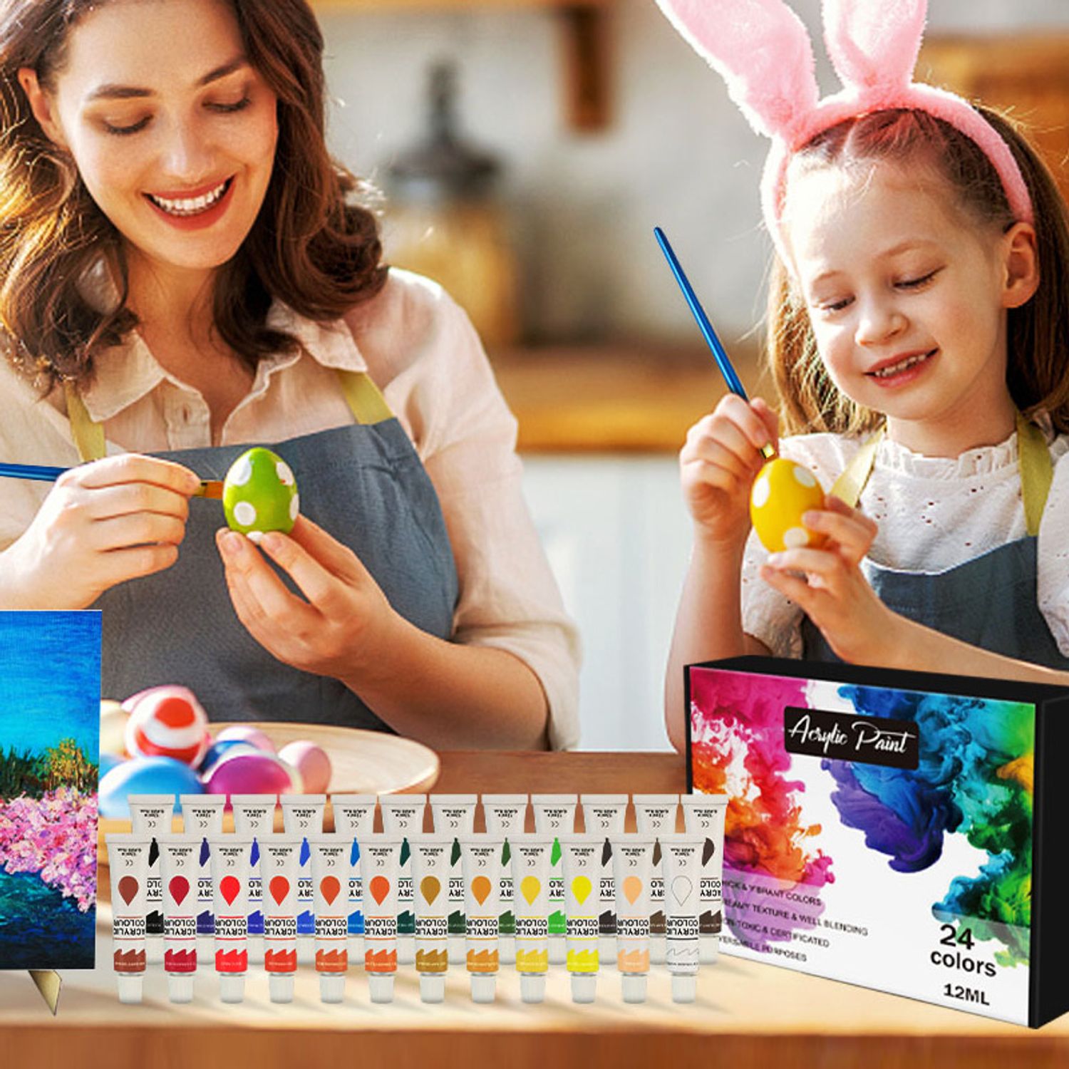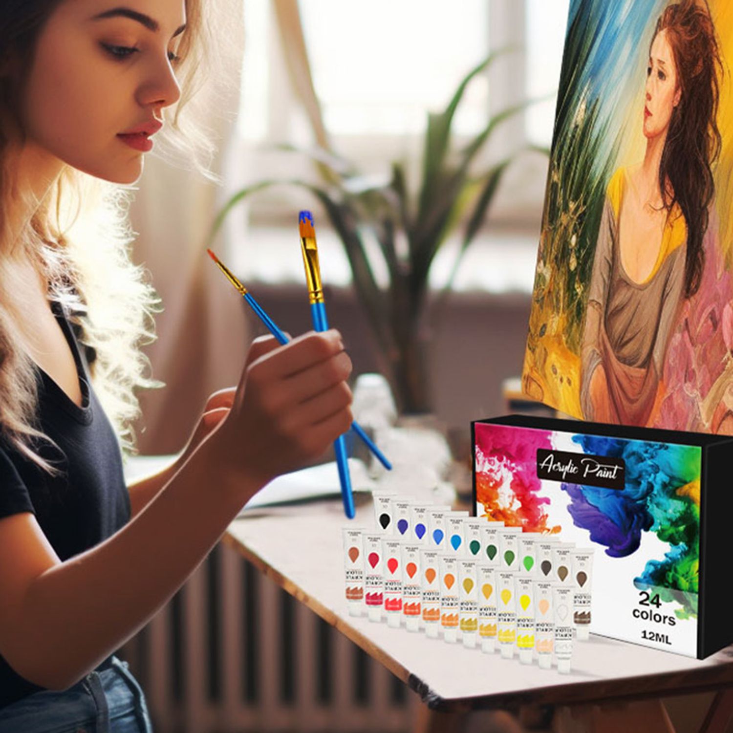 DIY Painting 24 Color Box With Brush Set Acrylic Paint Kit