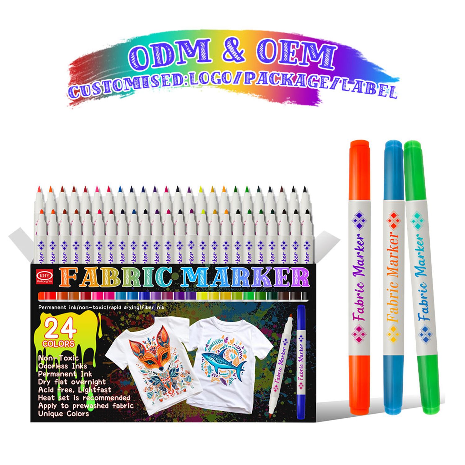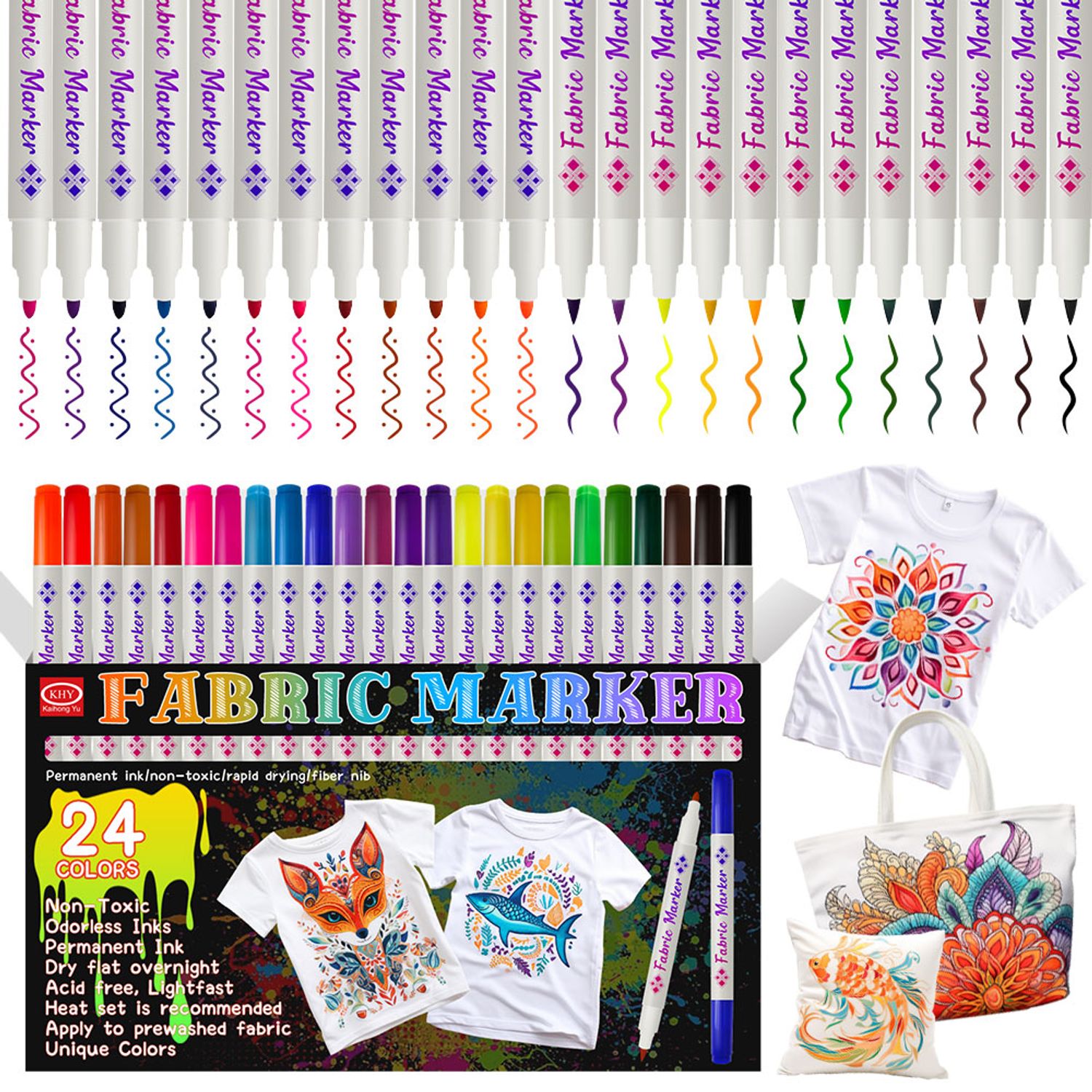 KHY 24Colors Oil-based Double Head Permanent Fabric Marker Pen Set